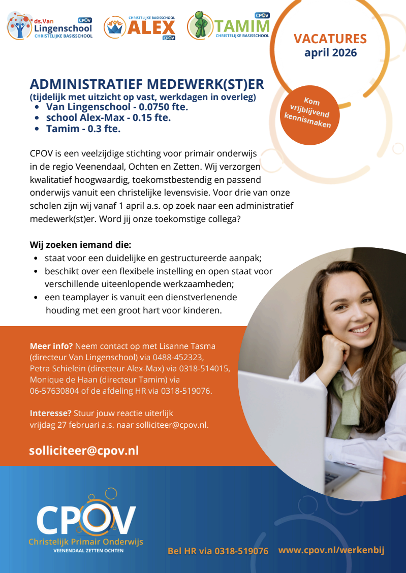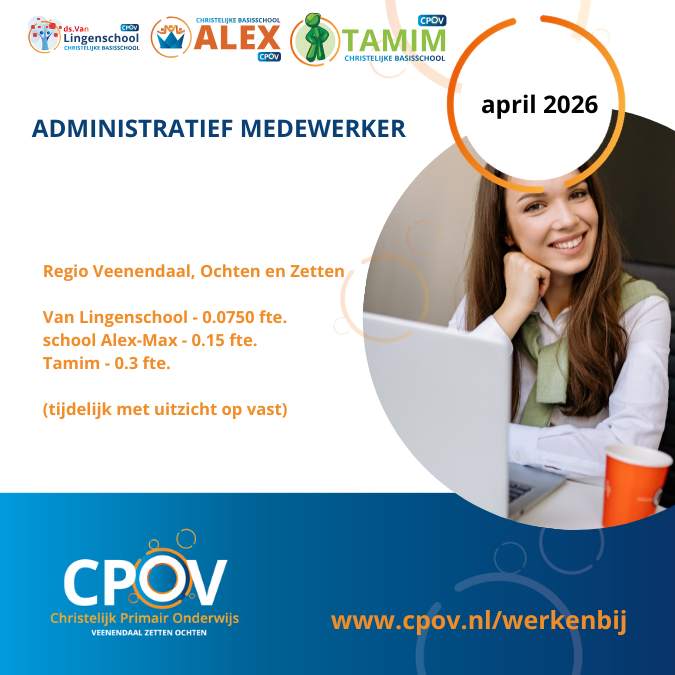 Het bestuur van Stichting CPOV e.o. is voor Ds. van Lingenschool, Alex-Max en Tamim op zoek naar een administratief medewerker.