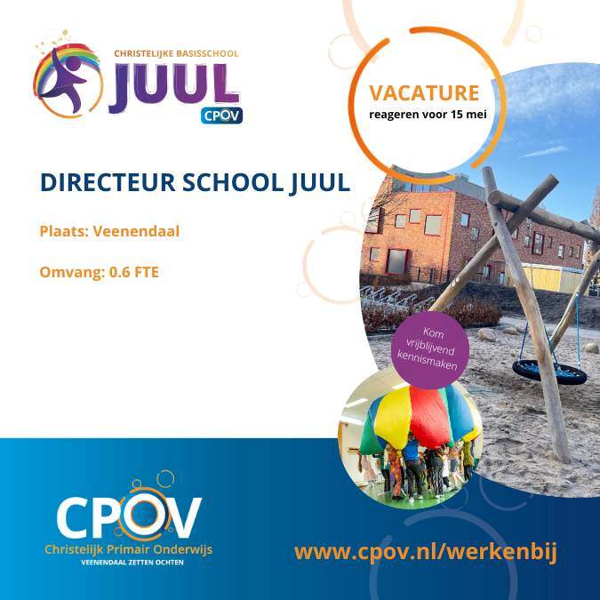 Het bestuur van Stichting CPOV is voor basisschool Juul op zoek naar een directeur (0.6 FTE).